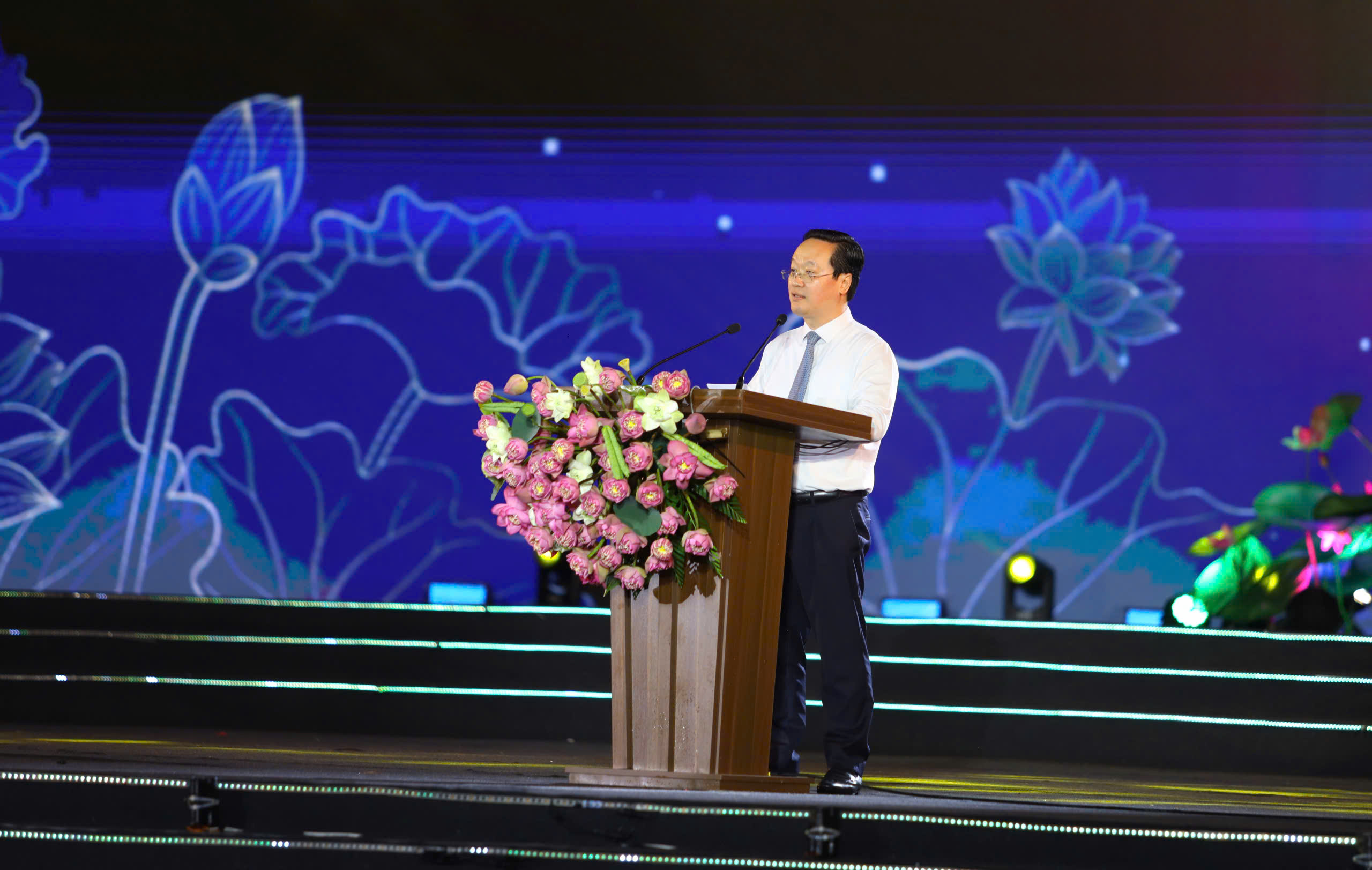 Phát biểu khai mạc chương trình, đồng chí Nguyễn Đức Trung, Bí thư Tỉnh ủy Nghệ An nhấn mạnh, Lễ hội Làng Sen năm nay được tổ chức với quy mô toàn quốc với nhiều hoạt động văn hóa, thể thao sôi nổi, hứa hẹn mang đến không gian nghệ thuật sống động, đa sắc màu văn hóa của cộng đồng các dân tộc Việt Nam; thể hiện tình cảm thiêng liêng, lòng biết ơn sâu nặng, niềm tin son sắt của đồng bào cả nước, kiều bào ta ở nước ngoài và bạn bè quốc tế mừng sinh nhật Bác Hồ kính yêu. Đây cũng là dịp để tỉnh nhà giới thiệu đến quý khách hình ảnh một Nghệ An nỗ lực, năng động trong phát triển kinh tế, giữ gìn phát huy bản sắc văn hóa xứ Nghệ, đã và đang quyết tâm hoàn thành được mong mỏi của Bác Hồ đối với quê hương làm cho Nghệ An mau trở thành một trong những tỉnh khá nhất ở miền Bắc.