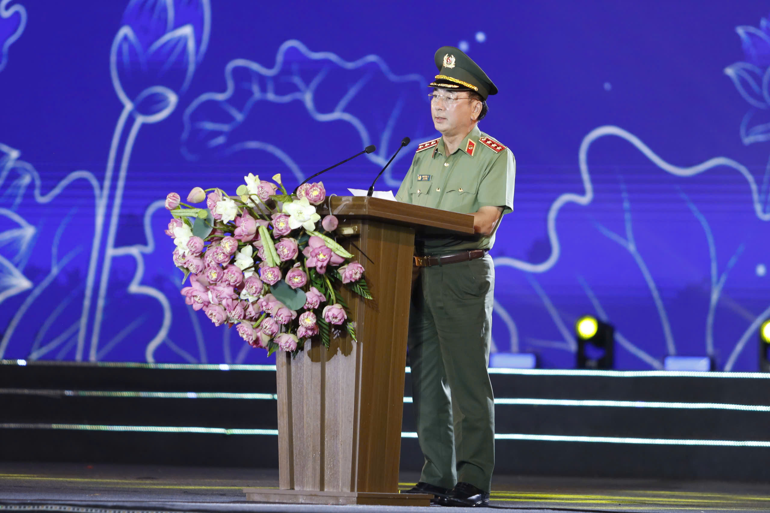 Đồng chí Thượng tướng Trần Quốc Tỏ, Ủy viên Ban Chấp hành Trung ương Đảng, Phó Bí thư Đảng ủy Công an Trung ương, Thứ trưởng Bộ Công An phát biểu tại buổi lễ.