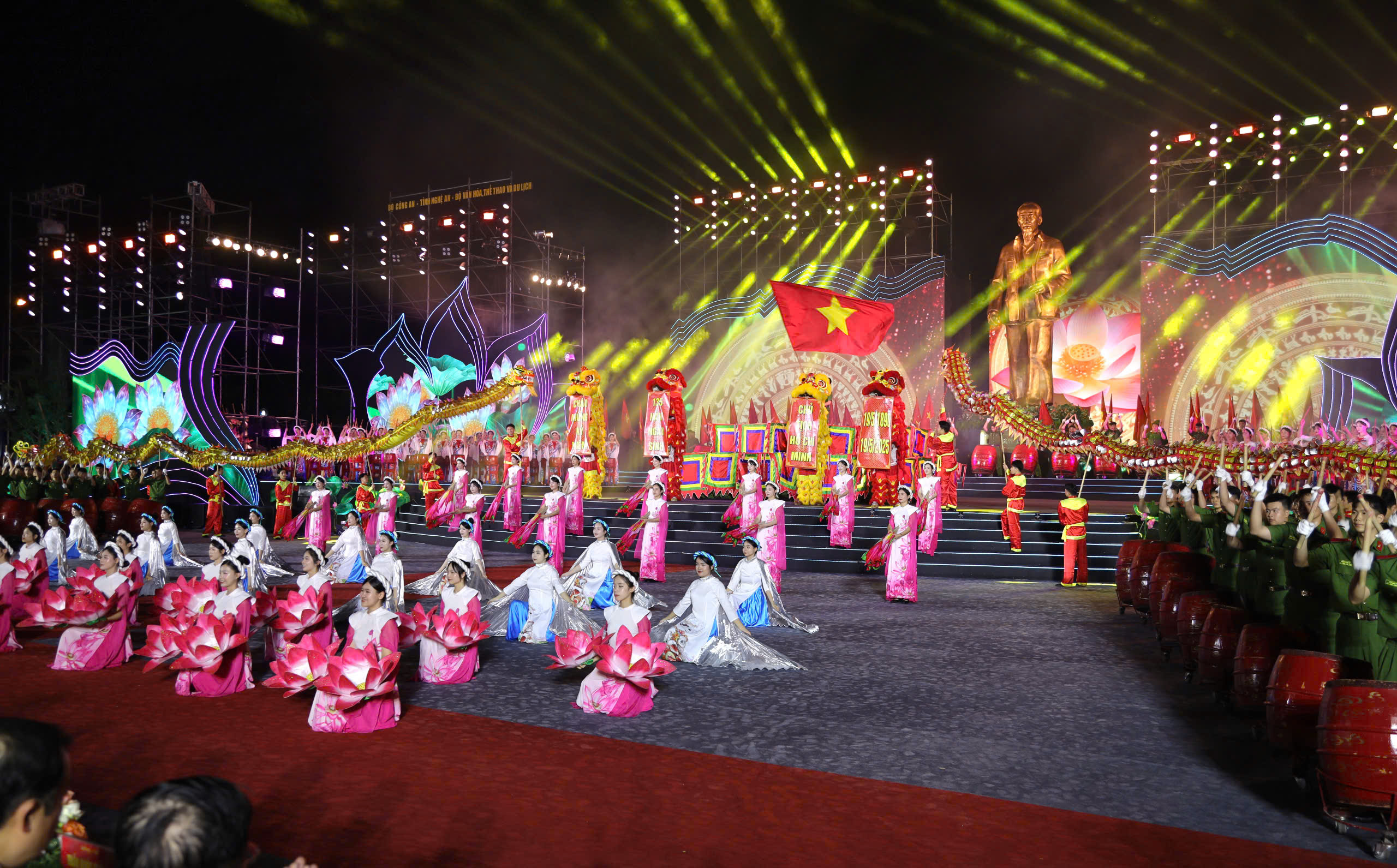 Các tiết mục được dàn dựng công phu, tiếng trống vang lên hòa quyện nhuần nhuyễn với nghệ thuật dân vũ, múa cờ, lân sư rồng, tạo nên bản hòa âm vang dội, một bức tranh nghệ thuật đặc sắc, sâu lắng, đậm đà bản sắc dân tộc; thể hiện lòng thành kính, tình cảm thiêng liêng đặc biệt đối với Chủ tịch Hồ Chí Minh.