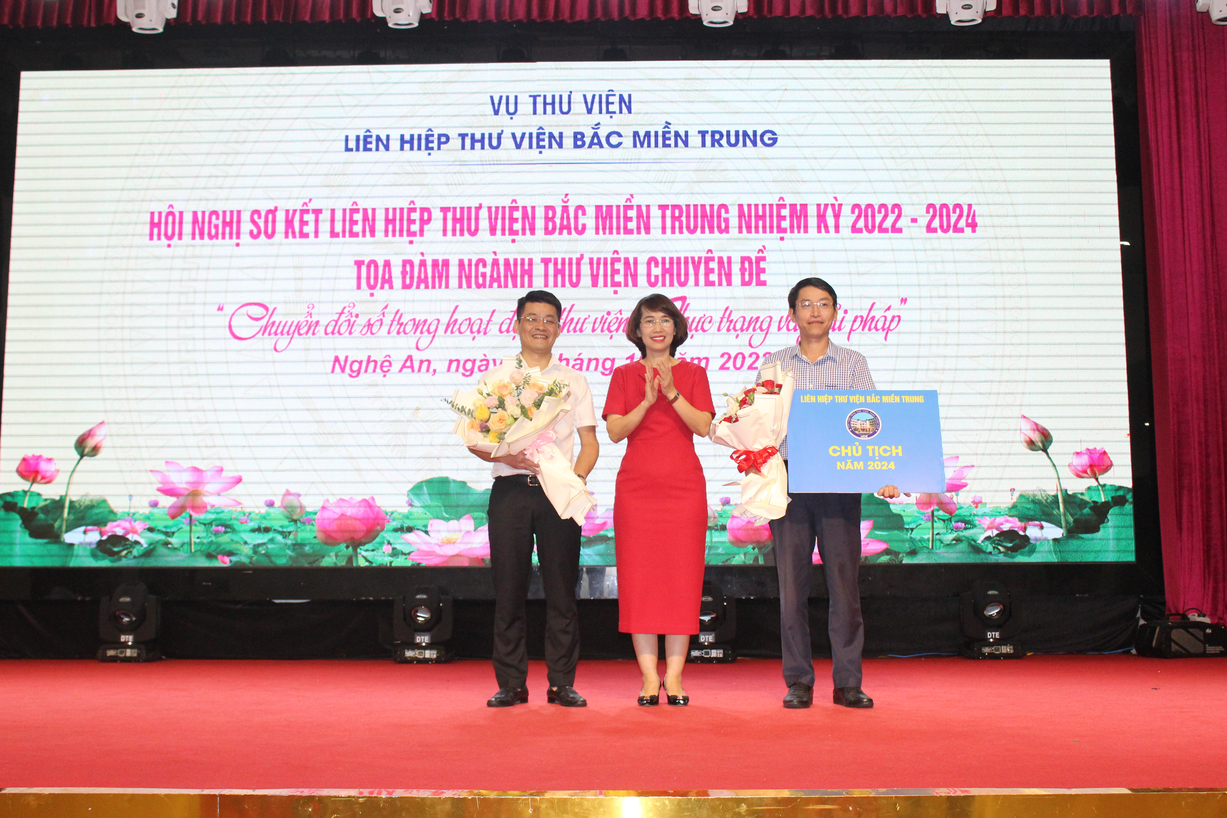 Kết thúc Hội ngị, đồng chí Nguyễn Vinh Quang Giám đốc thư viện Nghệ An đã trao lại quyền Chủ tịch Liên hiệp nhiệm kỳ 2024 - 2026 cho thư viện tỉnh thừa Thiên Huế.