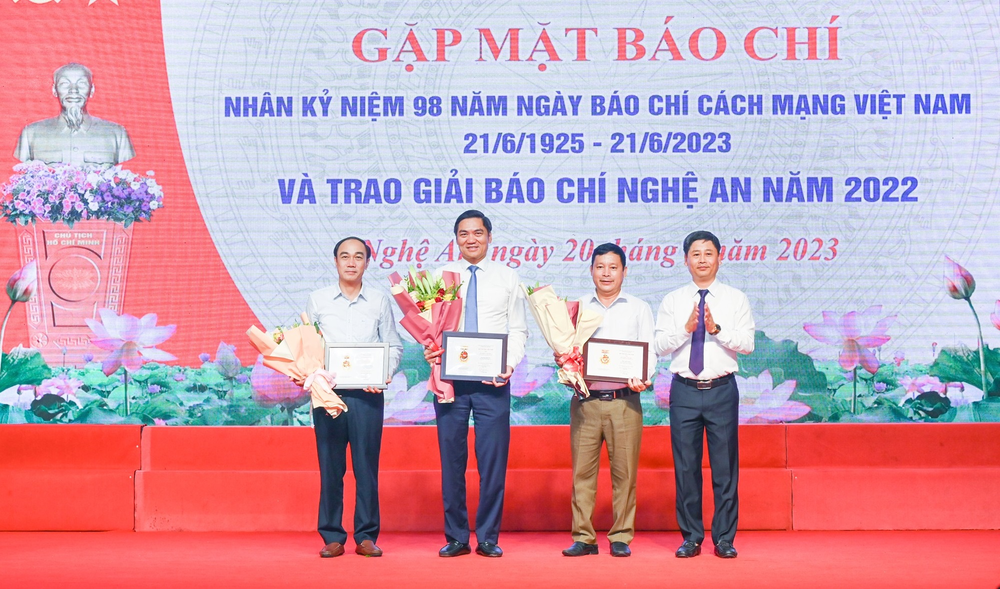 Nhân dịp kỷ niệm 98 năm Ngày Báo chí cách mạng Việt Nam, Tỉnh ủy, HĐND, UBND tỉnh Nghệ An trân trọng tặng hoa chúc mừng 88 cơ quan báo chí Trung ương thường trú trên địa bàn, báo địa phương và các cơ quan tham mưu công tác quản lý báo chí. Cũng tại buổi lễ, tỉnh Nghệ An đã tổ chức trao Giải Báo chí Nghệ An năm 2022.