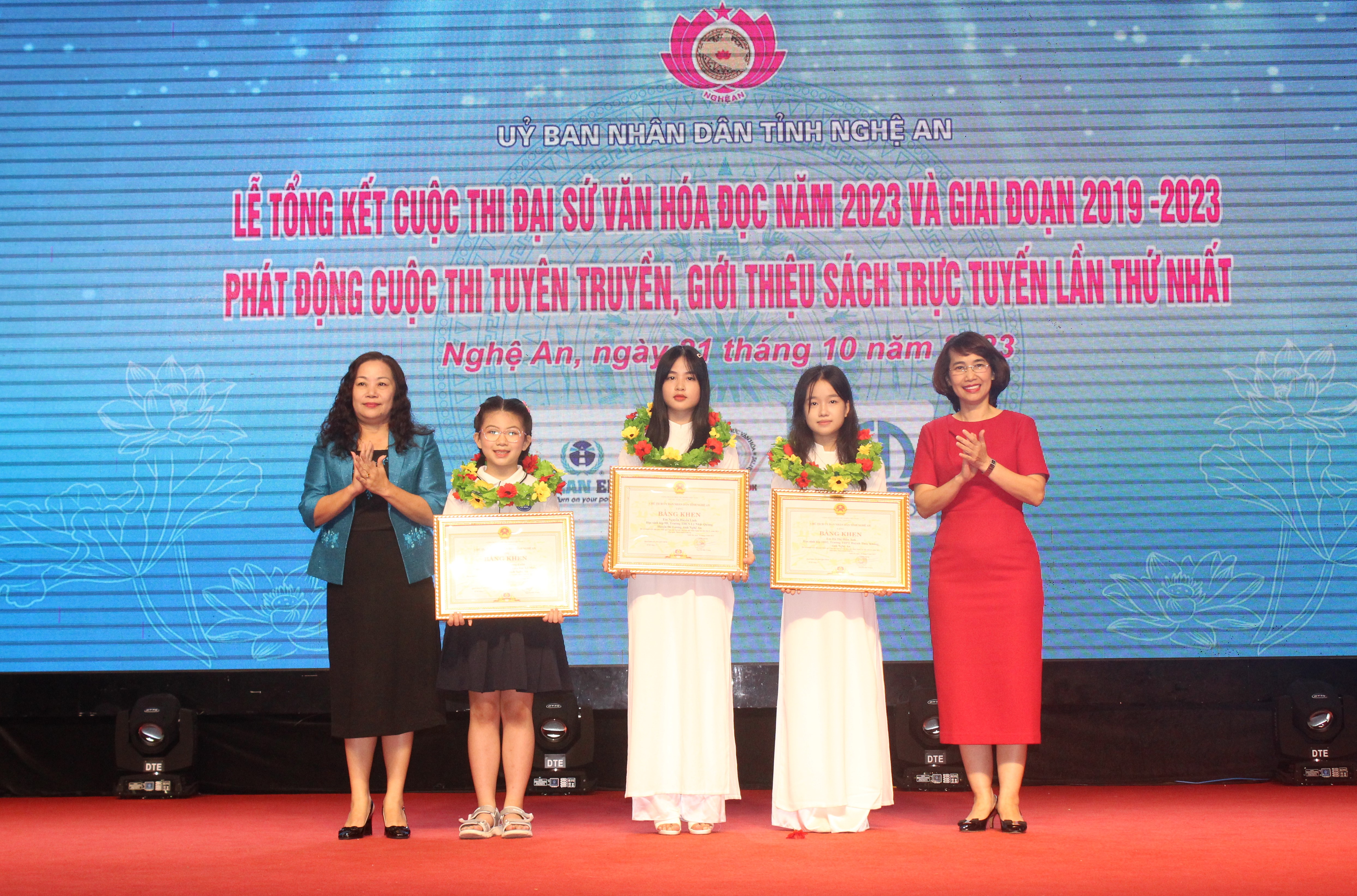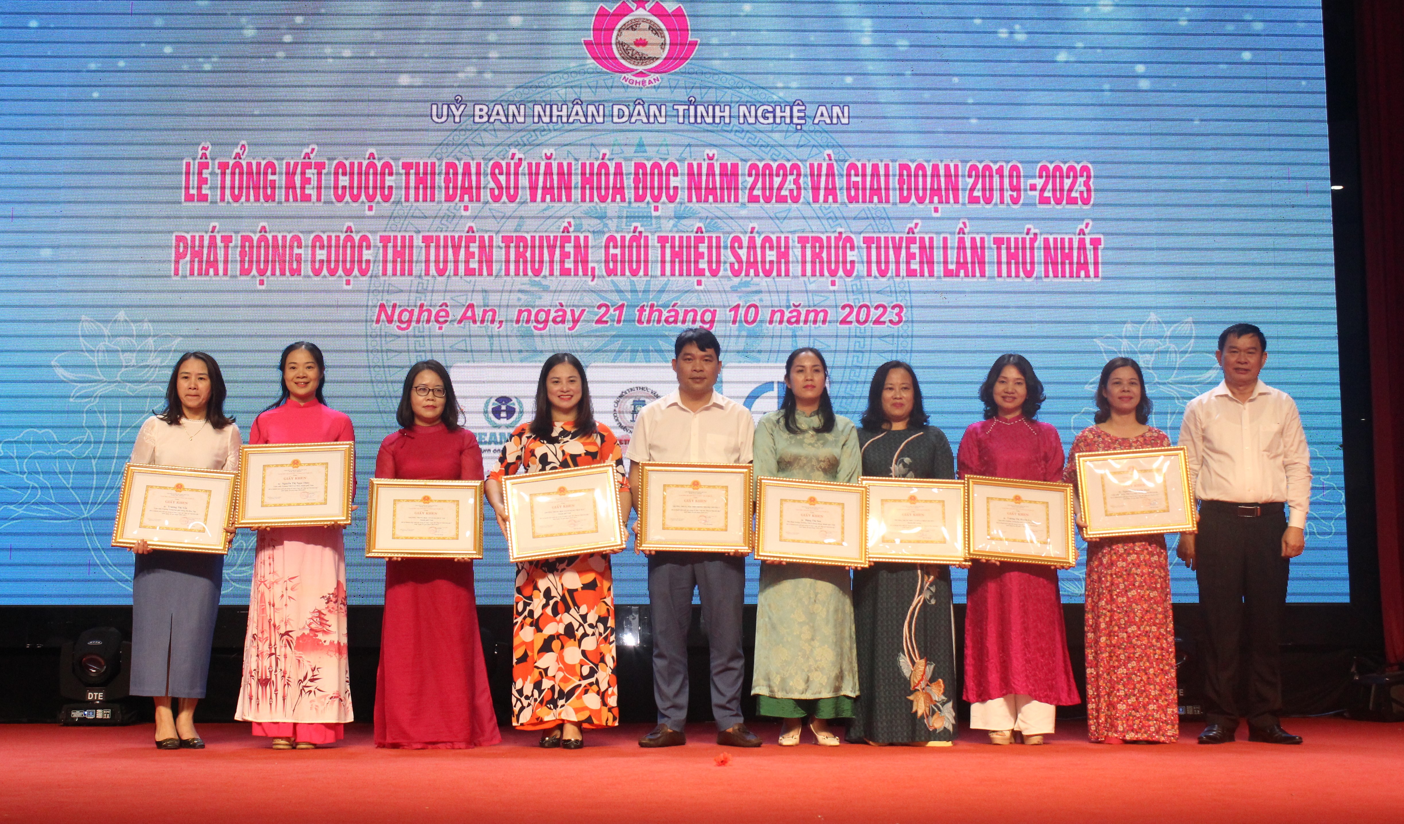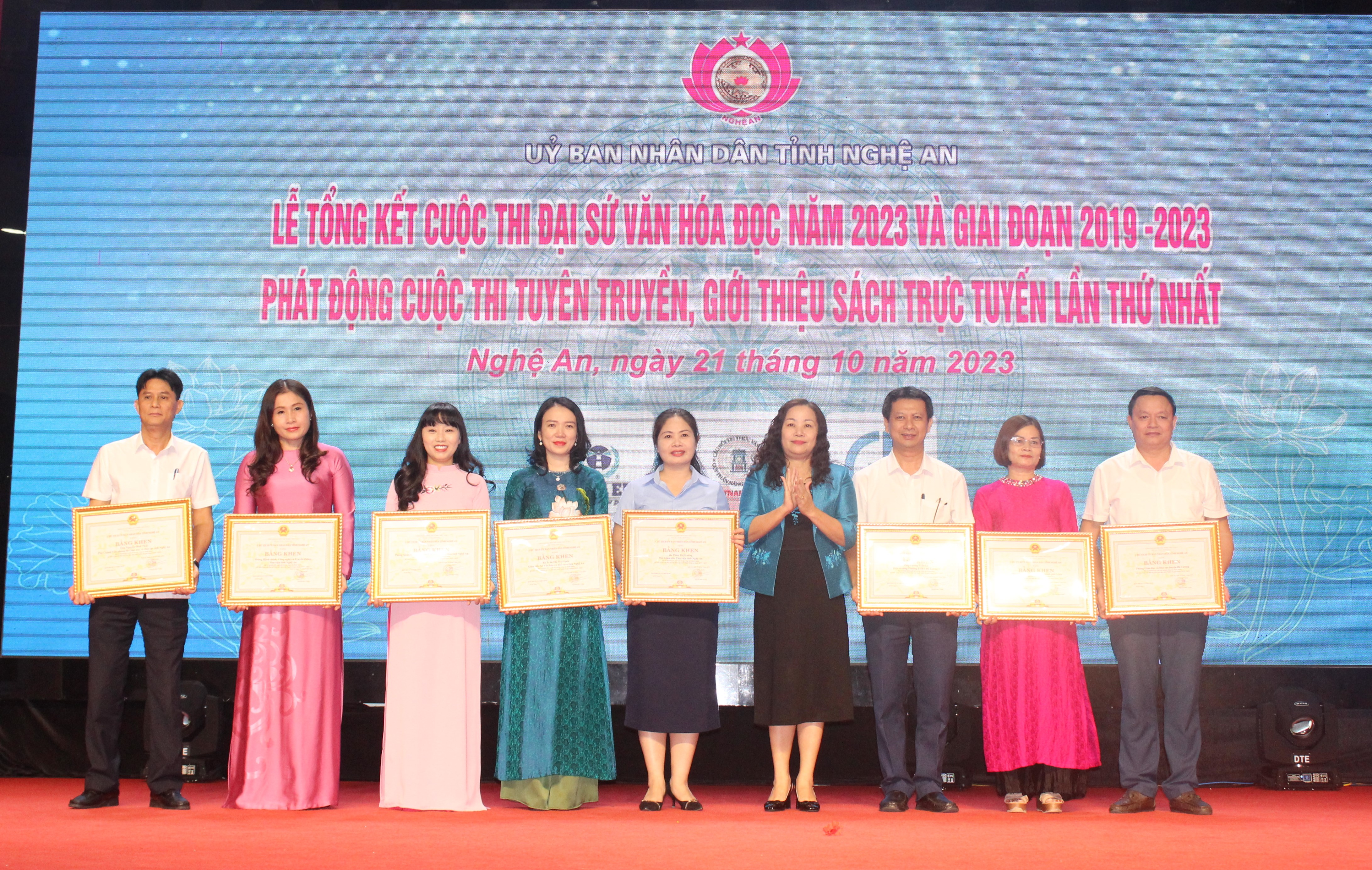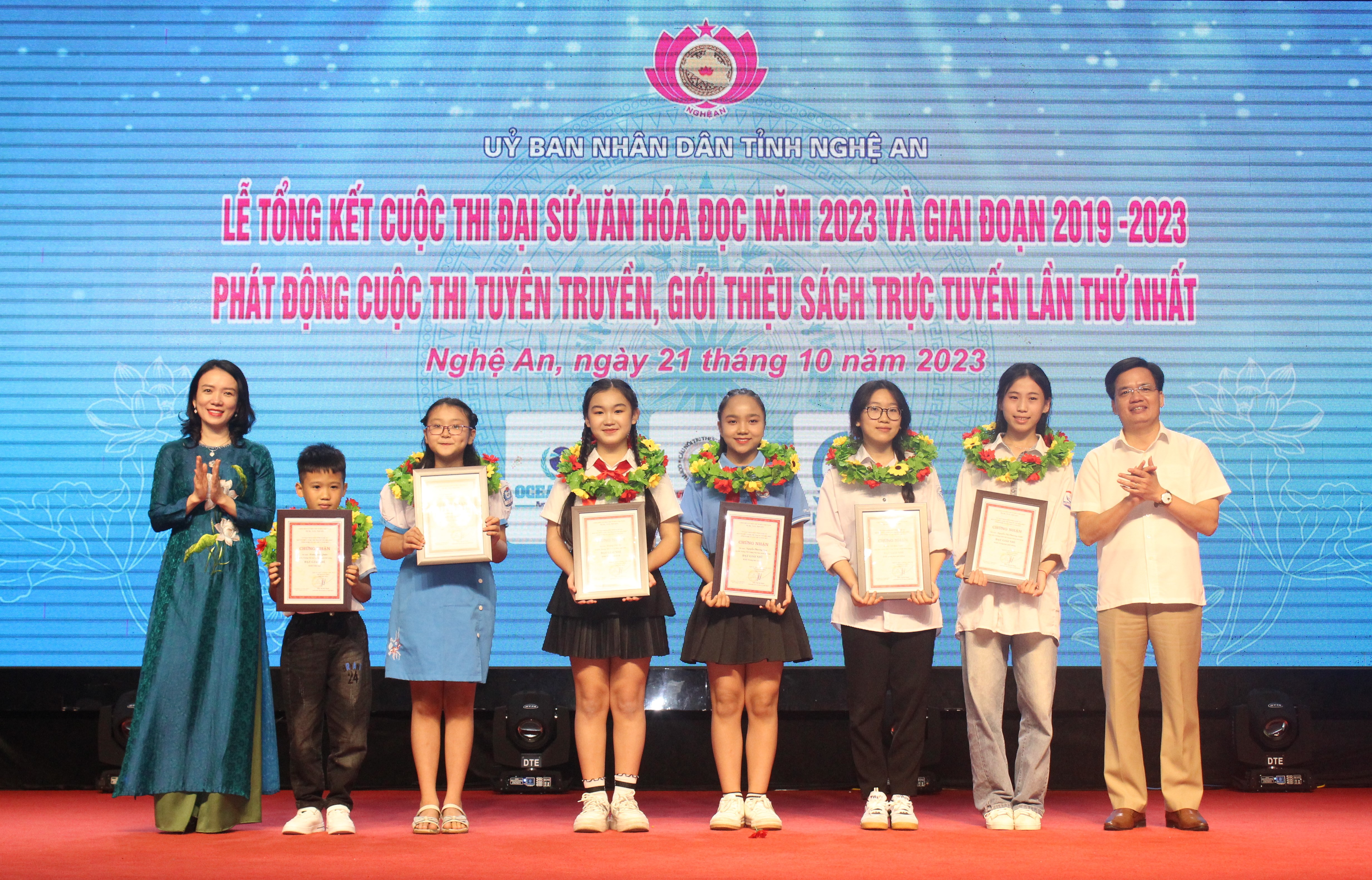 Dịp này, Ban Tổ chức đã trao thưởng cho 3 tập thể và 51 cá nhân đạt giải Cuộc thi Đại sứ Văn hóa đọc cấp tỉnh năm 2023. Giải Nhất tập thể được trao cho Phòng Giáo dục và Đào tạo thành phố Vinh; giải Nhì tập thể được trao cho Phòng Giáo dục và Đào tạo huyện Đô Lương và Phòng Giáo dục và Đào tạo huyện Diễn Châu.