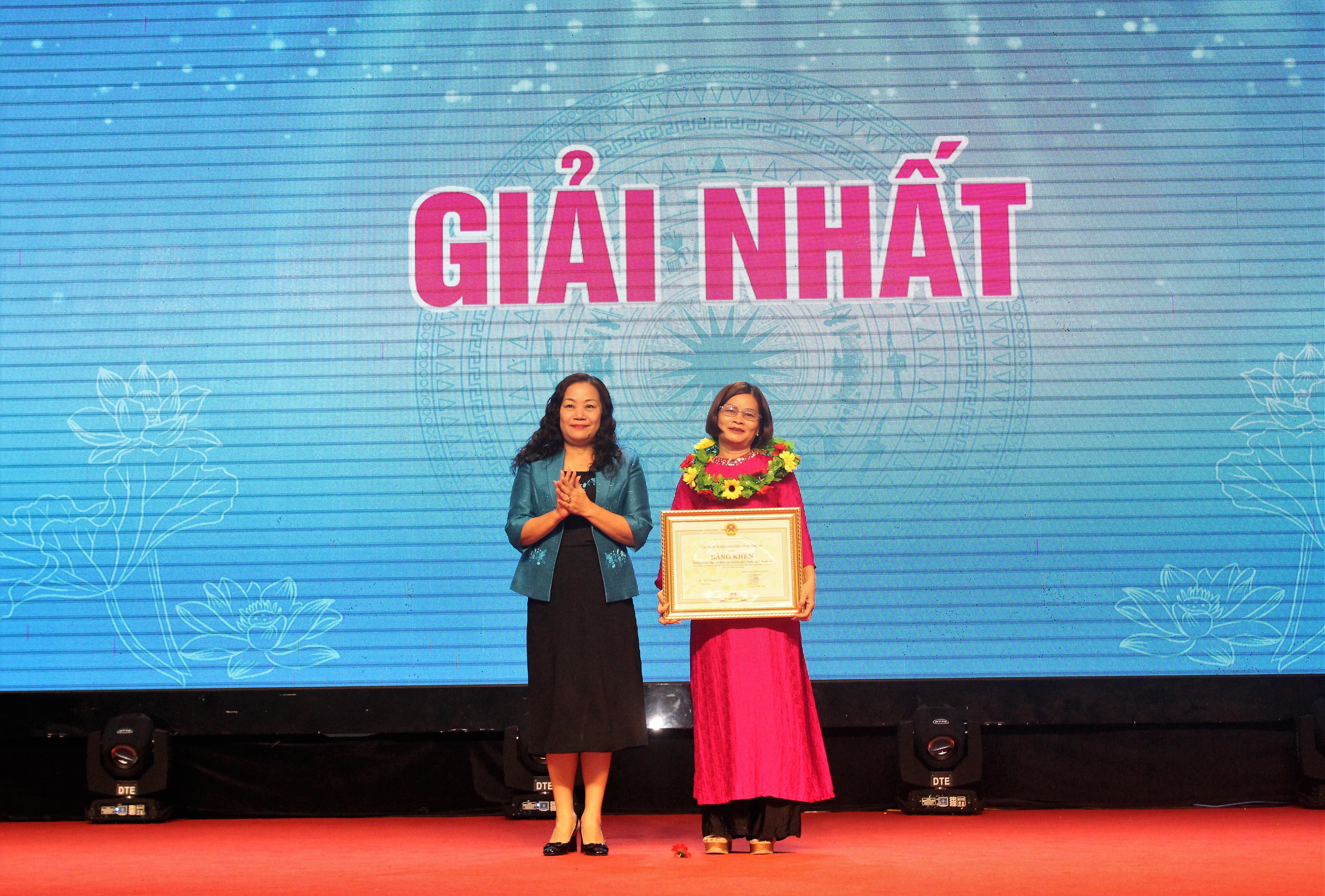 Giải Nhất tập thể được trao cho Phòng Giáo dục và Đào tạo thành phố Vinh. Ảnh Hồ Hà