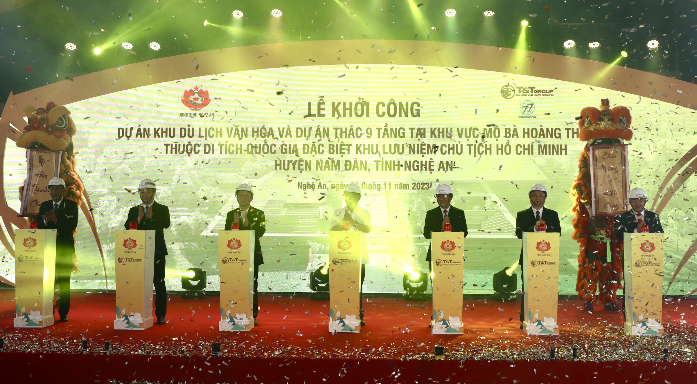 Tại sự kiện khởi công, nguyên Chủ tịch Quốc hội Nguyễn Sinh Hùng cùng lãnh đạo tỉnh Nghệ An, lãnh đạo Tập đoàn T&T đã bấm nút khởi công 2 dự án: Khu du lịch văn hóa thuộc Di tích quốc gia đặc biệt Khu lưu niệm Chủ tịch Hồ Chí Minh và Thác 9 tầng tại Khu mộ bà Hoàng Thị Loan.