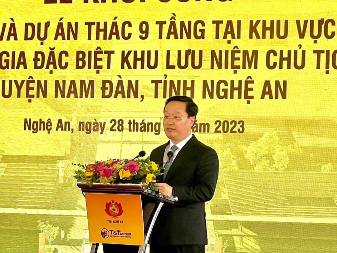 Sáng 28/11, UBND tỉnh Nghệ An phối hợp với Tập đoàn T&T tổ chức lễ khởi công 2 dự án: Khu du lịch văn hóa và thác 9 tầng tại Khu mộ bà Hoàng Thị Loan, thuộc Di tích Quốc gia đặc biệt Khu Lưu niệm Chủ tịch Hồ Chí Minh, tại huyện huyện Nam Đàn, tỉnh Nghệ An.