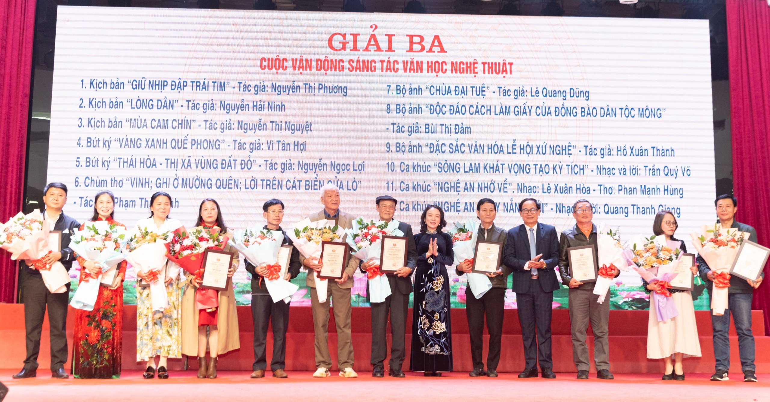 Chiều ngày 27/12, UBND tỉnh Nghệ An tổ chức tổng kết, trao giải Cuộc vận động sáng tác văn học nghệ thuật về chủ đề “Xây dựng nông thôn mới, xây dựng con người, văn hóa Nghệ An đáp ứng yêu cầu phát triển bền vững đất nước”.